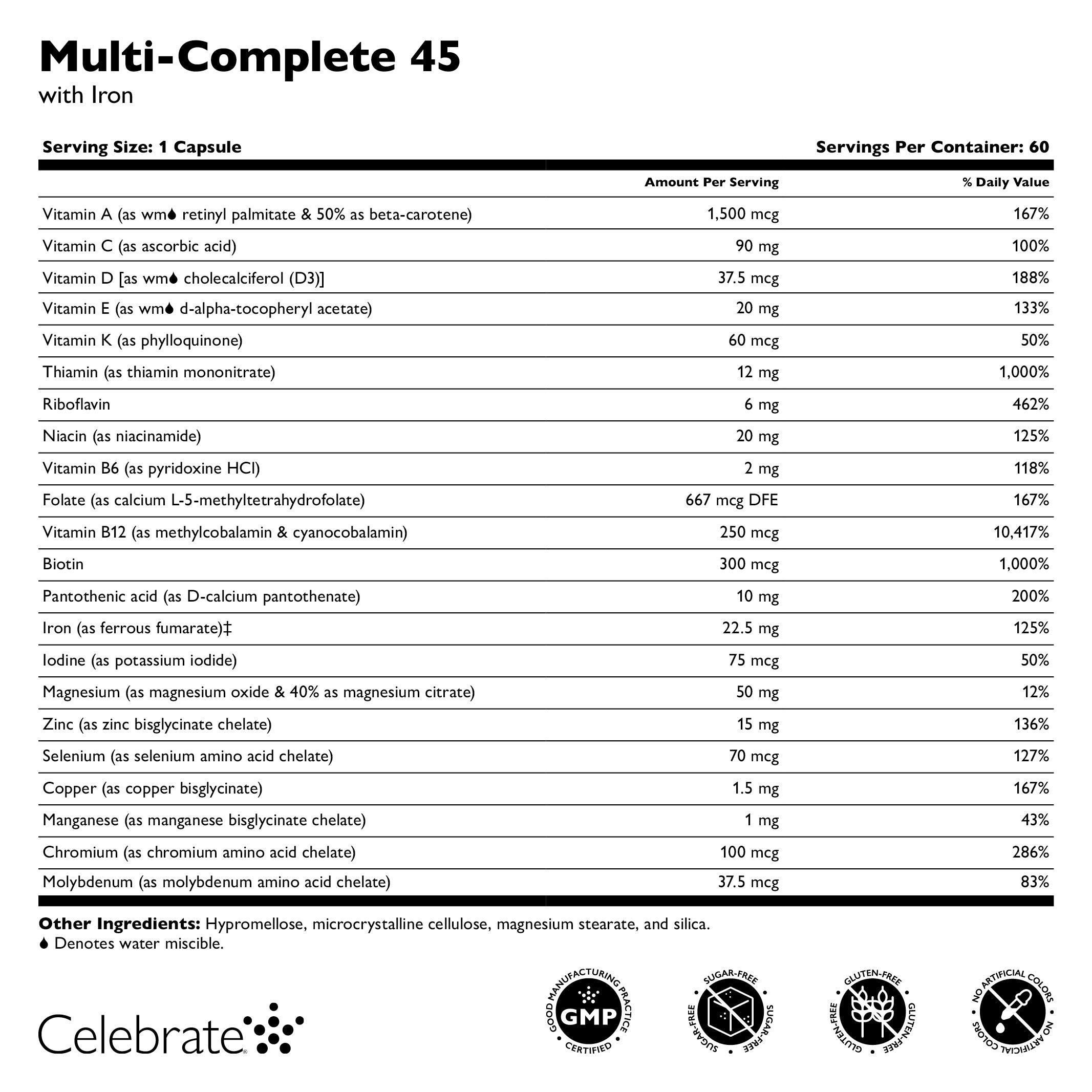 Other Ingredients: Hypromellose, microcrystalline cellulose, magnesium stearate, and silica. Gluten-Free. “wm” Denotes water miscible.
